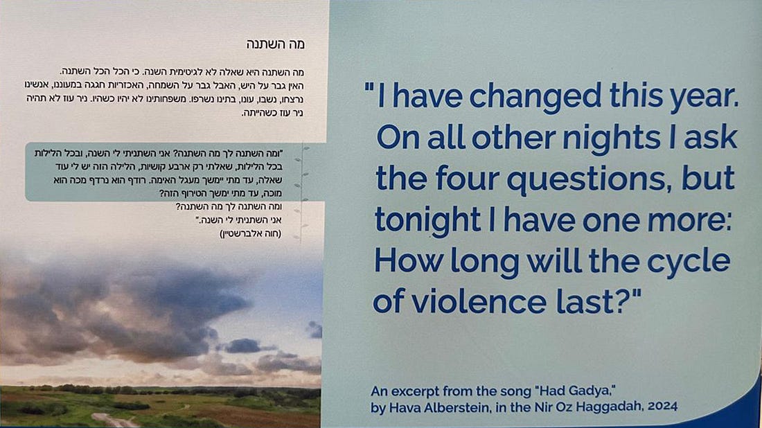The story becomes universal. What Is Different This Night?The Mah Nishtana becomes something entirely new. In Kibbutz Erez (2024):