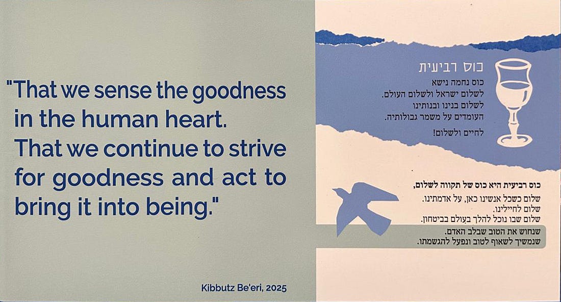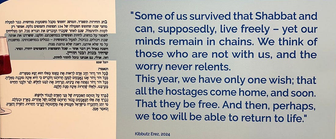 No abstraction. Just reality. Blessed Are You… the Farmer… and the DoerThe blessings of the Seder, revealing how kibbutz communities reimagined traditional brachot as opportunities to express their own values, labor, and lived reality. Rather than only blessing God in abstract terms, early kibbutzim chose to honor human action and contribution. Blessings shift from heaven… After October 7—Everything ConvergesThis is where the exhibition becomes something else entirely. Not history. But testimony. From Kibbutz Erez (2024):