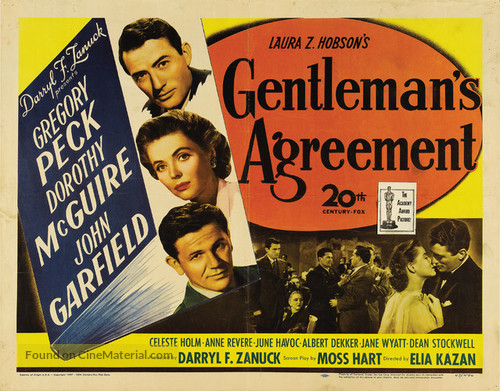 Gentleman's Agreement was a big hit in 1948 and won a boatload of Oscars including best picture and director. It was one of the first American films to take on an important subject: Anti-Semitism.