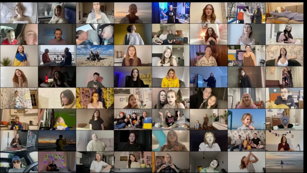Screenshot from YouTube video by Monetochka. It consists of videos sent by her listeners from Ukraine and Russia. Fair use.