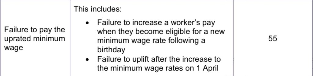 In the February 2024 list of 524 employers who failed to correctly pay minimum wage, over 10% of those shamed failed to uplift to the correct minimum wage rate following a birthday or not uplifting correctly for payment from 1st April when the new uplifted rates may apply.