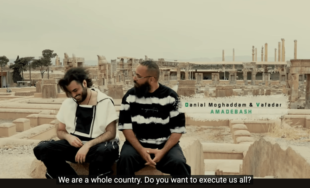 Snapshot from the "Amade Bash" music video on YouTube Vafa Ahmadpor, also known as Vafadar, and Danial Maghaddam were arrested shortly after the release of a music video for their new song, called "Be Ready" or "Amade Bash". According to various h… | Shouts - Music from the Rooftops! June 2 | Snapshot from the "Amade Bash" music video on YouTube Vafa Ahmadpor, also known as Vafadar, and Danial Maghaddam were arrested shortly after the release of a music video for their new song, called "Be Ready" or "Amade Bash". According to various human rights groups the rappers were arrested in the city of Shiraz on May 9th and their current whereabouts are unknown. Read also: Dissident artist Toomaj Salehi sentenced to death for using his voice The video starts off with the two rappers stating that the Iranian people are united as a nation and asks authorities "Do you want to execute us all?" The duo criticize their government in the song, pointing out economic hardships, repression by security forces and the oppressive tactics of the so-called morality police. Since the murder of Mahsa Amini, while in custody, and the worldwide protests that followed, Iranian authorities have taken a hard stand against artists using their talent in protest and used any means necessary to stifle dissent. | | | |