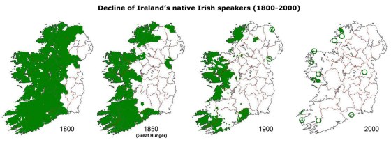 Though the Great Hunger caused the most impressive loss of Irish-speaking modern Ireland on the map, the percentage lost by the Irish State is greater.