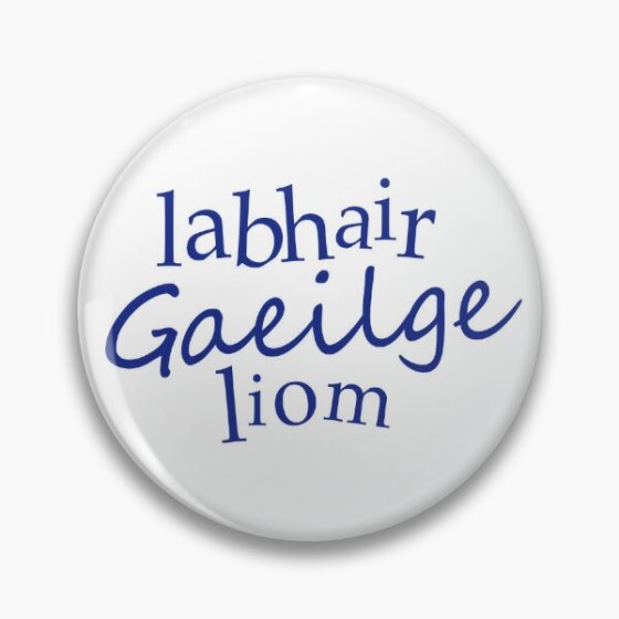 Badge inviting people to speak Irish to the wearer (Image sourced: Internet)