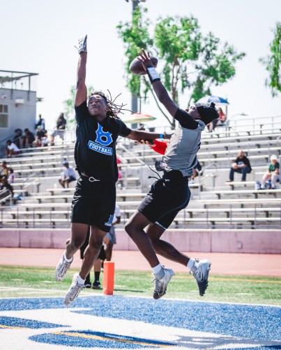 High school athletes compete in a 7-on-7 tournament at Baldwin Park High School in June. (Oliver Marks / High School Insider)