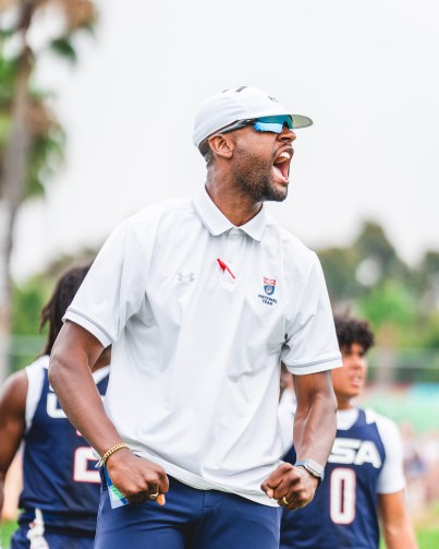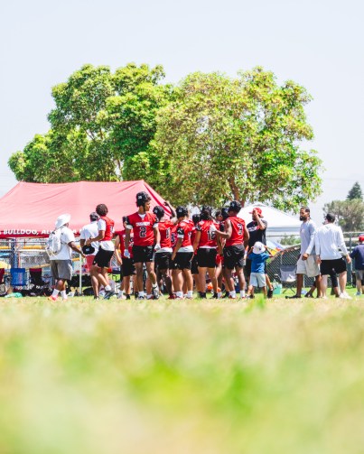 Coach Thompson inspires the next generation of flag football players trying out for Woodbridge's undefeated team. (Oliver Marks / High School Insider)