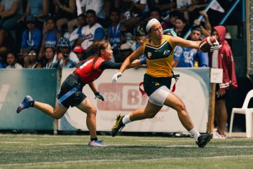 Kodie Fuller evades defenders at the Asia-Oceania Flag Football Championships in Kuala Lumpur in 2023. (Photo courtesy of Kodie Fuller)