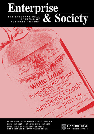 | Explore the latest issue of Enterprise and Society Vol 26 Issue 3 2025 TOC Mollan, Simon, and Kristine Sævold. Private Empires: The Development of Offshore Commercial and Financial Services in Tax Havens, 1955–1979. https://doi.org/10.1017/eso.2024.26 Greiner, Andreas. Turbulent Takeoff—Hard Landing: State-Airline Relations and the Challenges of Early Commercial Aviation in Iran, 1923–1932. https://doi.org/10.1017/eso.2024.48 Shibe, Riyoko. Petrochemicals, Pollution, and the Moral Economy of Noxious Industry: Grangemouth, Scotland, from 1951 to 1989. https://doi.org/10.1017/eso.2024.41 Stackelberg, Emmet von. ‘The Fatal Blemish’: Purity, Consistency, and Chemical Engineers at the Origin of a New Visual Order, 1890–1930. https://doi.org/10.1017/eso.2024.39 MacKenzie, Niall G., Jillian Gordon, and Martin J. Gannon. Local Patriots: Dewar’s Scotch Whisky, Prosociality, Politics, and Place—1846–1930. https://doi.org/10.1017/eso.2024.40 Madureira, Nuno Luis, and Isabel Bartolomé Rodríguez. Nuclearization on the Iberian Peninsula: A Tale of Two Countries (c. 1947–1988). https://doi.org/10.1017/eso.2024.17 Shekhar, Sudhanshu, and Vidyanand Jha. Exogenous Shocks and Cluster Change in the Howrah Foundries: Dynamics of Conflict and Fragmentation. https://doi.org/10.1017/eso.2024.35 Yajima, Shaun. Fuel, Fear, and Fault: Mass Media and Cartel Criticism During the German Coal Crisis of 1900. https://doi.org/10.1017/eso.2024.32 Chirosa Cañavate, Luis, Josean Garrués-Irurzun, and Juan A. Rubio-Mondéjar. Goodbye to a Historical Exclusion? The Journey of the Female Corporate Elite over a Century in Spain (1917–2017). https://doi.org/10.1017/eso.2024.30 Kaminski, Robert. Strike Insurance: The Labor Question and the Limits of Insurance. https://doi.org/10.1017/eso.2024.19 Perkins, Barbara Bridgman. Capital Markets and Medical Care: How Wall Street Invented Physician Management Companies in the 1990s. https://doi.org/10.1017/eso.2024.23 Innset, Ola. National Interests as Positive Externalities: Headquarters Retainment as Justification for Hybrid State-Owned Enterprises in Norway (2000–2021). https://doi.org/10.1017/eso.2024.25 Fitzpatrick, Matthew P. Globalization or Empire? Revolution, the State, and the Geopolitics of Chinese Debt, 1895–1914. https://doi.org/10.1017/eso.2024.21
