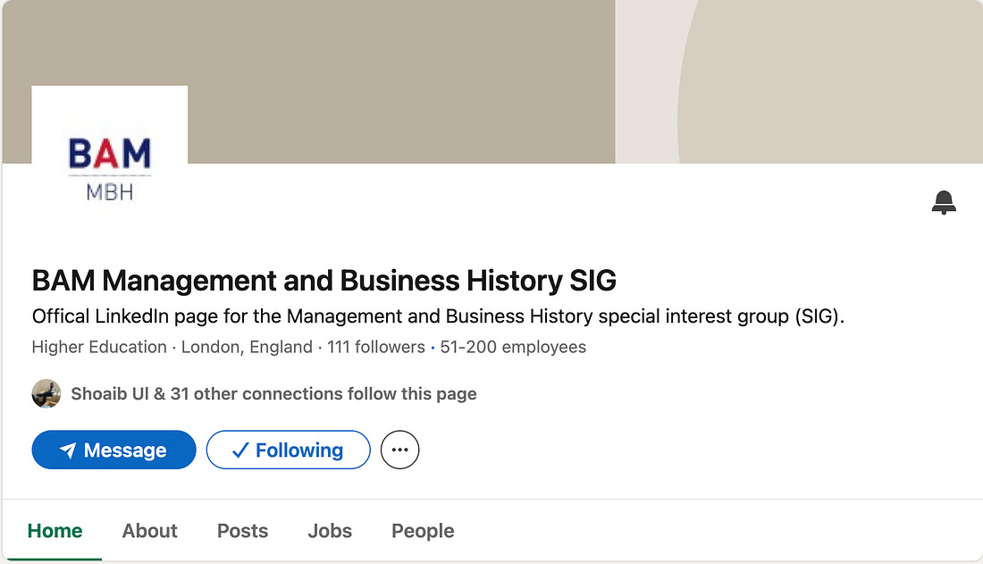 LinkedIn Updates for Business HistoryLot's of events are coming up, follow us on LI so you won't miss anythingThe British Academy of Management (BAM) Management and Business History (MBH) Special Interest Group (SIG) — yes, this is some mouthful of acronyms — will be running a series of webinars, and we are working on other events, both connected with the conference and separately. If you want to stay up-to-date with what is happening, make sure you follow the SIG page on LinkedIn: BAM events are mostly free for members, and once you attend more than one event, it’s worthwhile taking out the membership as there is a wide variety of BAM events all through the year: Invite your friends and earn rewardsIf you enjoy Organizational History Network, share it with your friends and earn rewards when they subscribe. |
