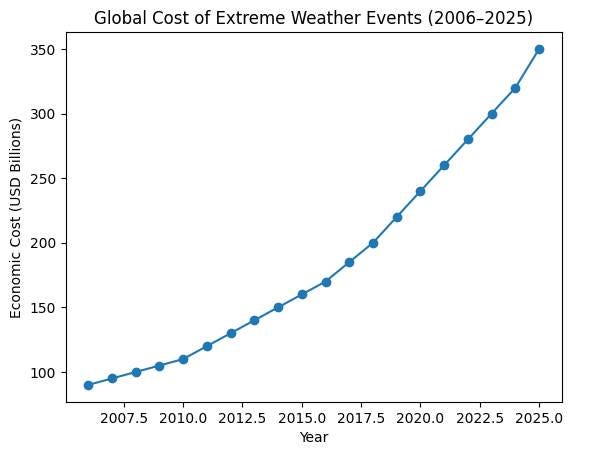 While people do not notice rising levels of climate change causing emissions, it is much harder to ignore extreme weather events. Billions of people around the world are now exposed to more frequent and increasingly severe weather disasters, and attribution science is linking these events to a warming world. Extreme weather is exacting a heavy toll both in terms of human life and material costs. Aggregated disaster reporting trends illustrate the sharp rise in extreme weather events over the past two decades. Cost Increasing storms, heatwaves, floods, and fires are imposing escalating costs worldwide. In the U.S., 2025 weather-related climate disasters claimed 276 lives and cost $115 billion. Globally, extreme weather events in 2025 resulted in insured losses of more than $120 billion. Extreme weather erodes economic productivity and competitiveness. Over the last 20 years, the economic toll from extreme weather has surged to $2.8 trillion from 2000-2019 and more than $2 trillion in just the last decade. To illustrate the financial impacts on individual countries, Canada’s GDP declined by $25 billion between 2015 and 2025 due to extreme weather. This represents approximately half of all the growth the country saw in the last decade. Heat In 2025, Canada experienced a tenfold increase in the frequency of heatwaves, and Europe also suffered through some of the longest and most severe heatwaves on record. In some parts of the world, temperatures of 45°C and even 50°C are becoming commonplace. Heat is deadly. A 30-year study estimated that there are more than 153,000 additional heatwave-related deaths per season globally. Heatwaves also stress and weaken entire ecosystems. Approximately half the world’s population (4 billion people) is impacted by extreme heat for at least part of the year. Significantly more people are expected to be impacted by extreme heat by 2050. Even if we start slashing emissions in earnest today, increasing heat will be with us for decades, if not centuries. No matter what we do, heatwaves will become hotter, longer, and more frequent. Storms and Flooding In 2025, we saw intensified cyclones, hurricanes, and flooding. Major events included Hurricane Melissa in the Caribbean (one of three category 5 storms), which caused widespread record-setting destruction in Jamaica, Cuba, Haiti, and the Dominican Republic. At least 100 people are known to have died. Super Typhoon Fung-Wong in the Philippines and exceptionally intense monsoon flooding in India and Pakistan affected millions of people and led to hundreds of deaths. Storms and cyclones killed thousands in Asia, and flooding events in central Texas killed 135 people. Droughts and Wildfires In 2025, prolonged drought threatened ecosystems and contributed to severe wildfires in California, Greece, and Turkey. Drought is contributing to the extent, intensity, and severity of fires globally. These fires cause death and destruction; they also release carbon pollution and fine particulate matter that is damaging the mammalian respiratory and cardiovascular systems. According to one report, wildfires increased CO₂ by 9 percent between 2024 and 2025. The report found that wildfires are two to three times more likely due to anthropogenic climate change, and they anticipate the frequency of wildfires will continue to rise as the world keeps warming. The Los Angeles wildfires have been described as a climate-fueled catastrophe. These fires burned 78 square miles across Los Angeles. More than 16,000 structures were destroyed, and 180,000 people evacuated. The estimated economic damage may exceed $100 billion. The official death toll is pegged at 30, but some estimates put that number at over 440 deaths when smoke-related health impacts are factored. Wildfire smoke is far more deadly than the fire itself. Smoke from wildfires kills 40.000 Americans annually, and by 2050, smoke from wildfires is expected to cause 71,000 fatalities in the country. Conclusion The steady increase in billion-dollar disasters and heat-related fatalities is forcing the public to face the gravity of the climate crisis. While people may not notice rising levels of atmospheric carbon, billions are feeling the heat and suffering through storms, floods, drought, and wildfires. |